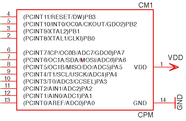 This universal transceiver module is as small as an Atmel ATTINY84 in a DIL14 package. Why an AVR ATTINY? Because the module can optionally carry this controller. So you are free to utilize the CC1101 directly with your own SPI-enabled controller or you may program the onboard ATTINY to your needs - using its I/O. Have a look at this modules Image Gallery Specs